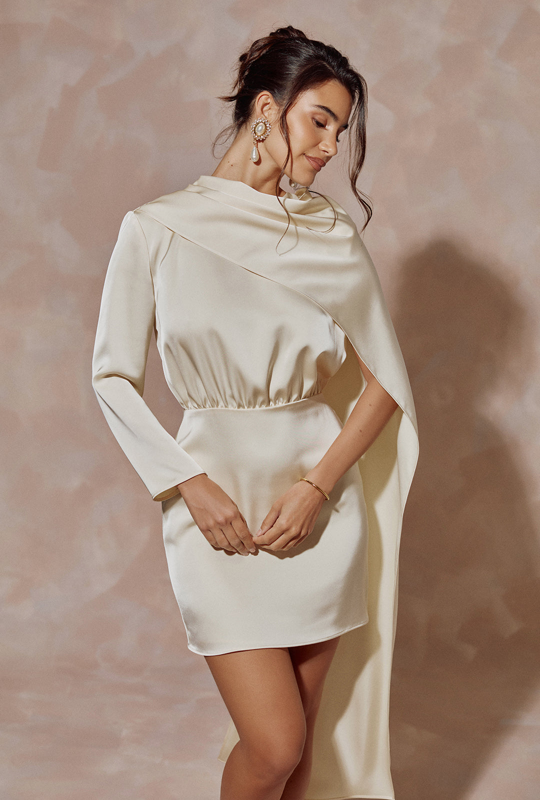 This satin mini dress is designed to make a statement through fluidity and modern elegance....
