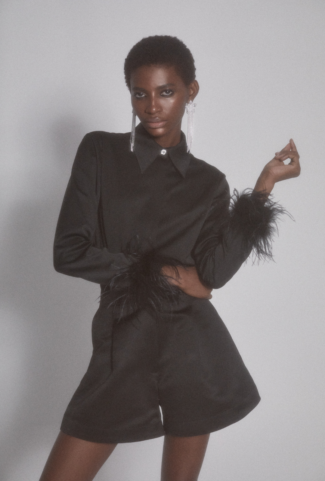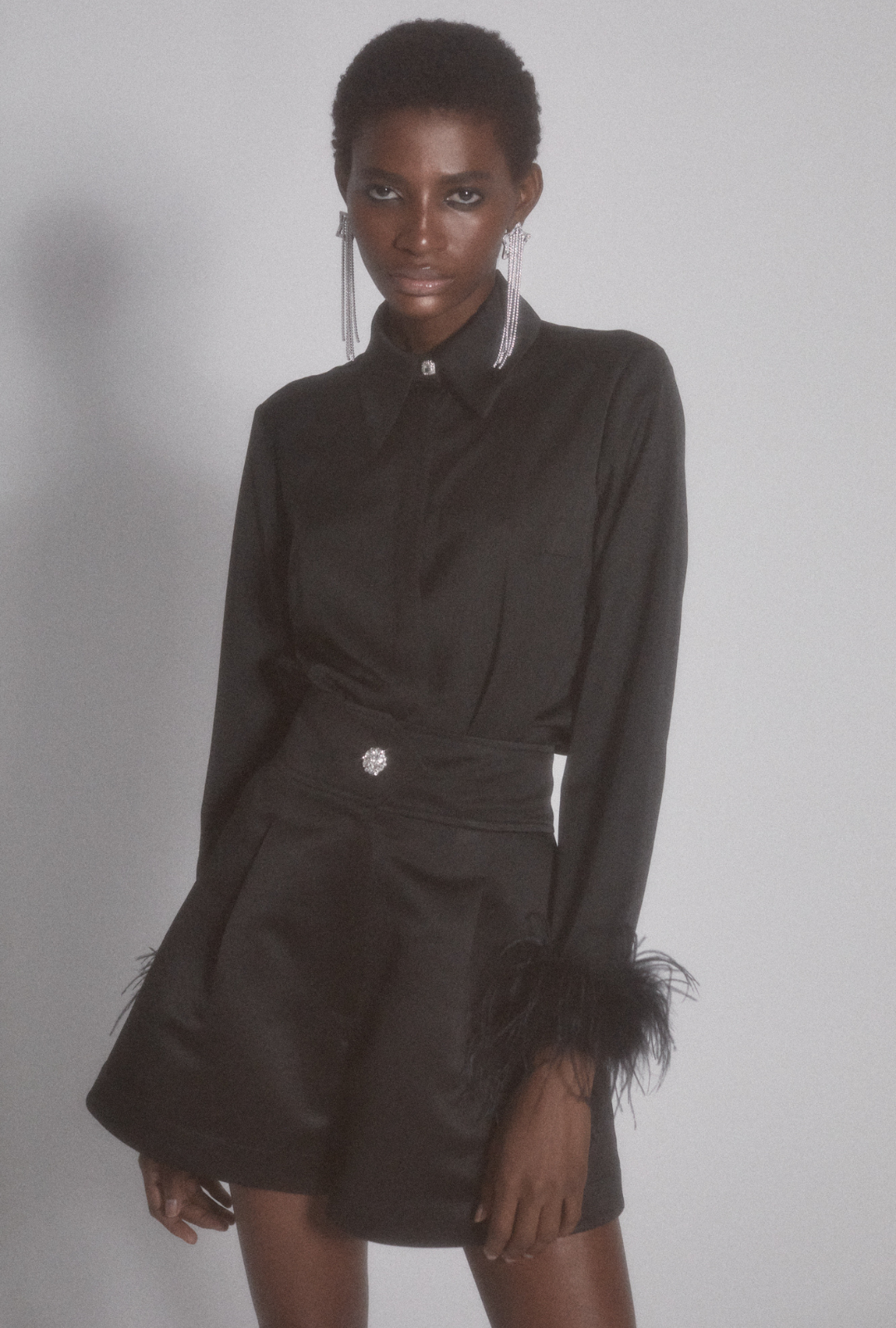Feathered Shirt with Jewel Button