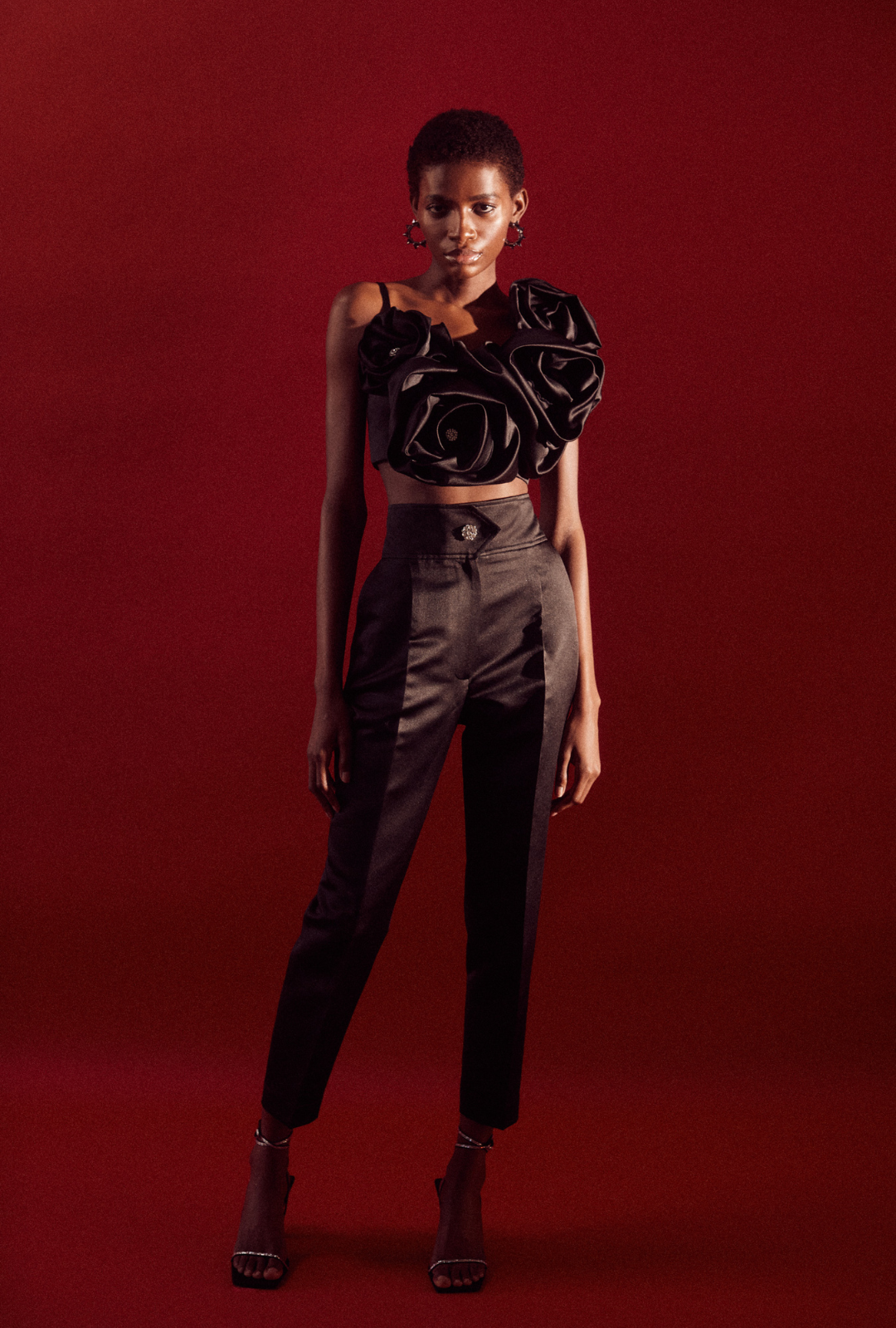 Featuring the iconic high-waisted fit of our signature structured trousers, now reimagined in a party-glam...