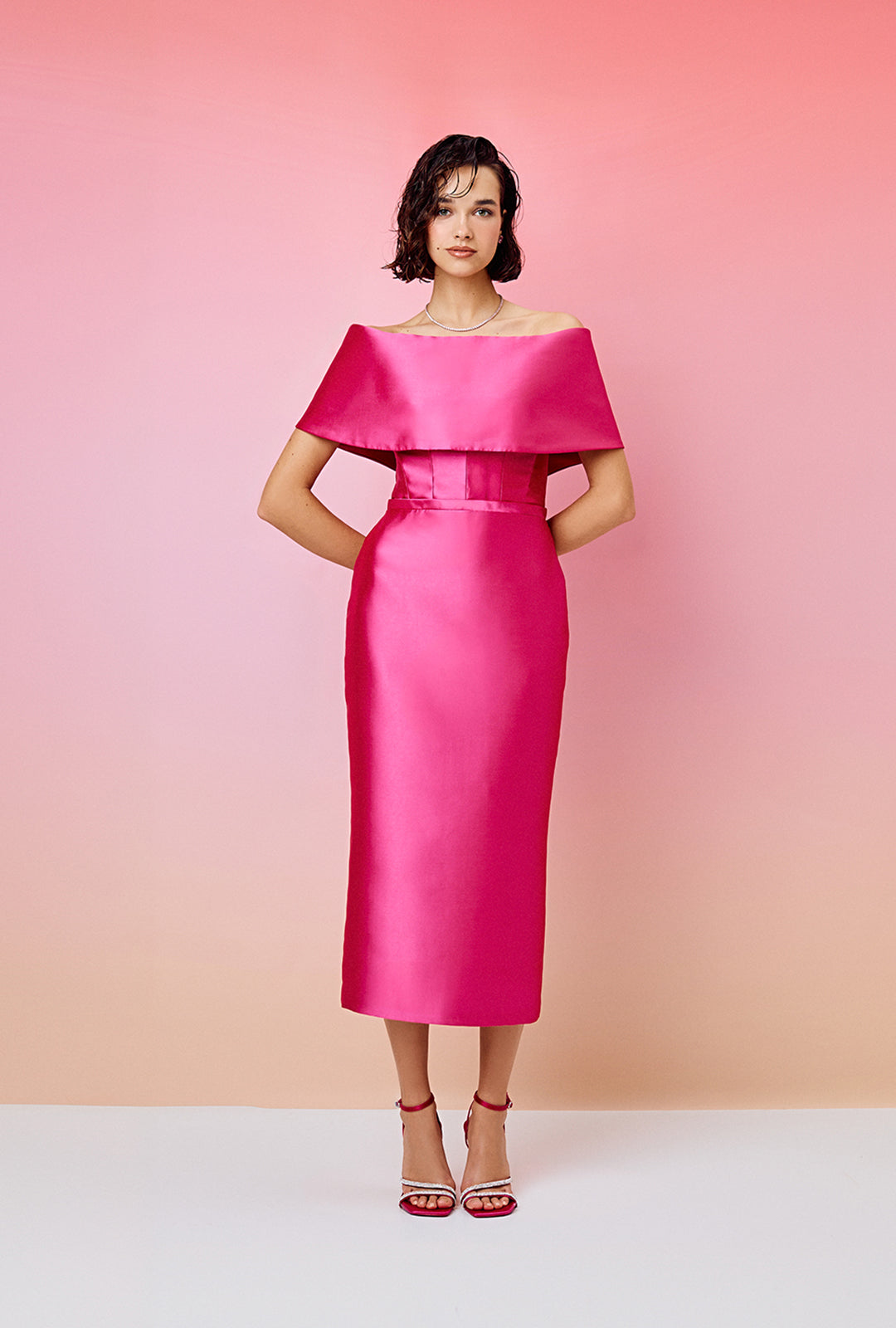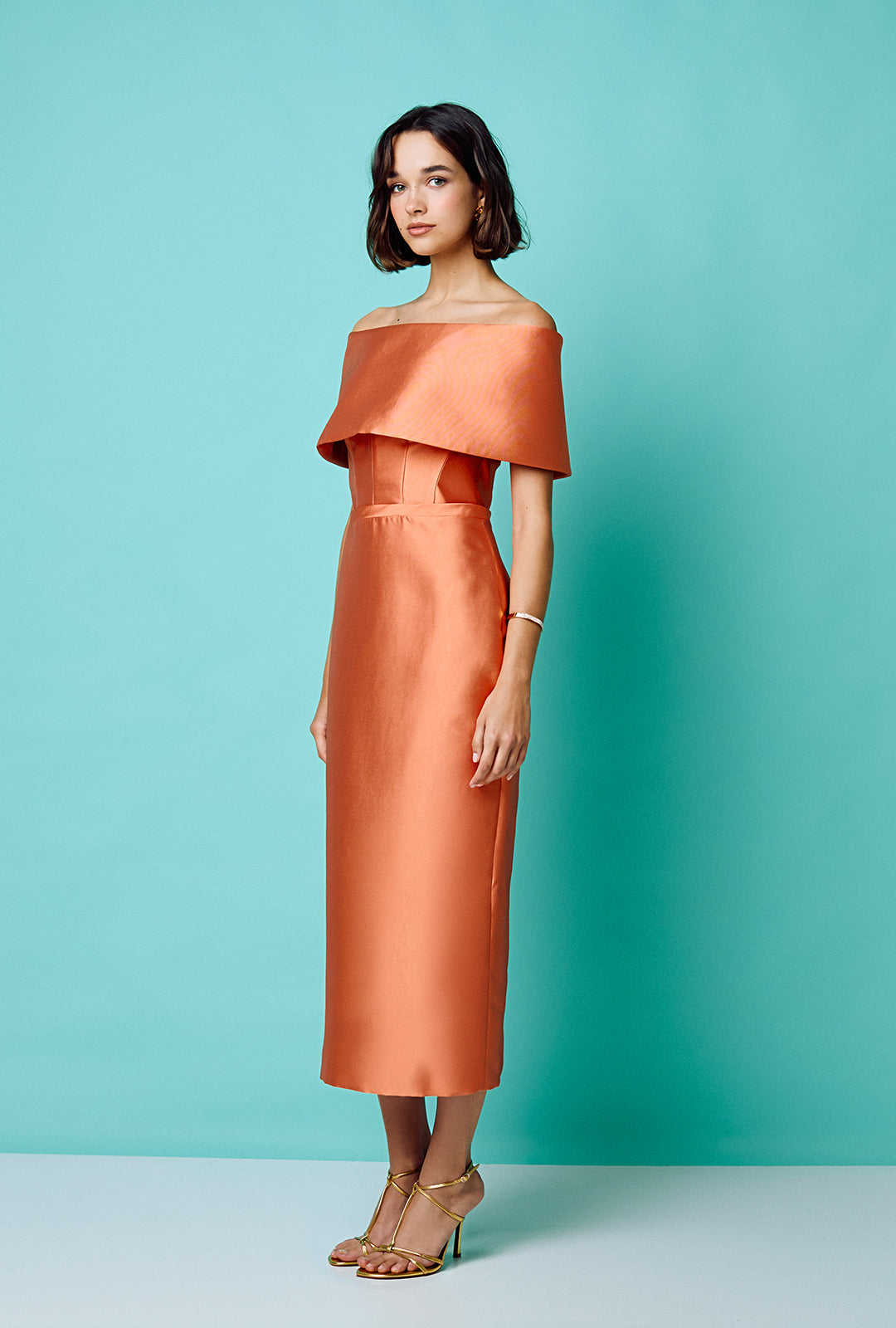 Midi Dress in Mikado with Off-Shoulder Neckline