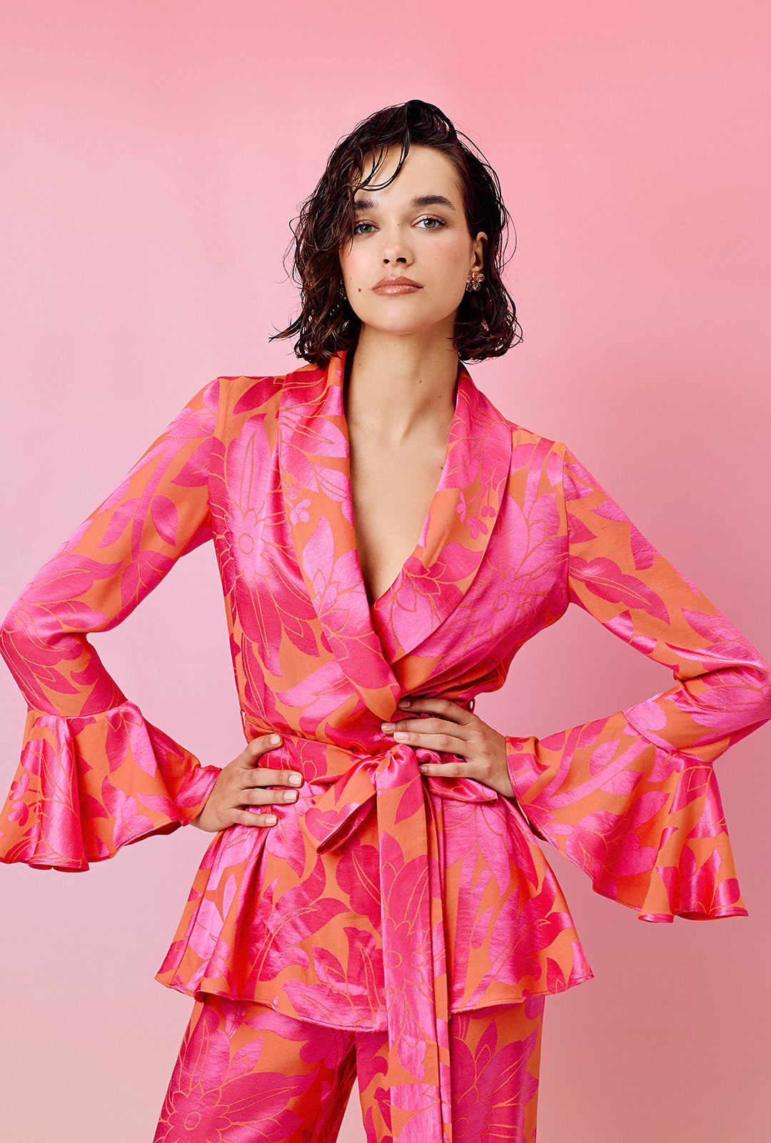 Wrap Blouse with Belt in Floral Print Crafted from a refined and fluid viscose blend,...