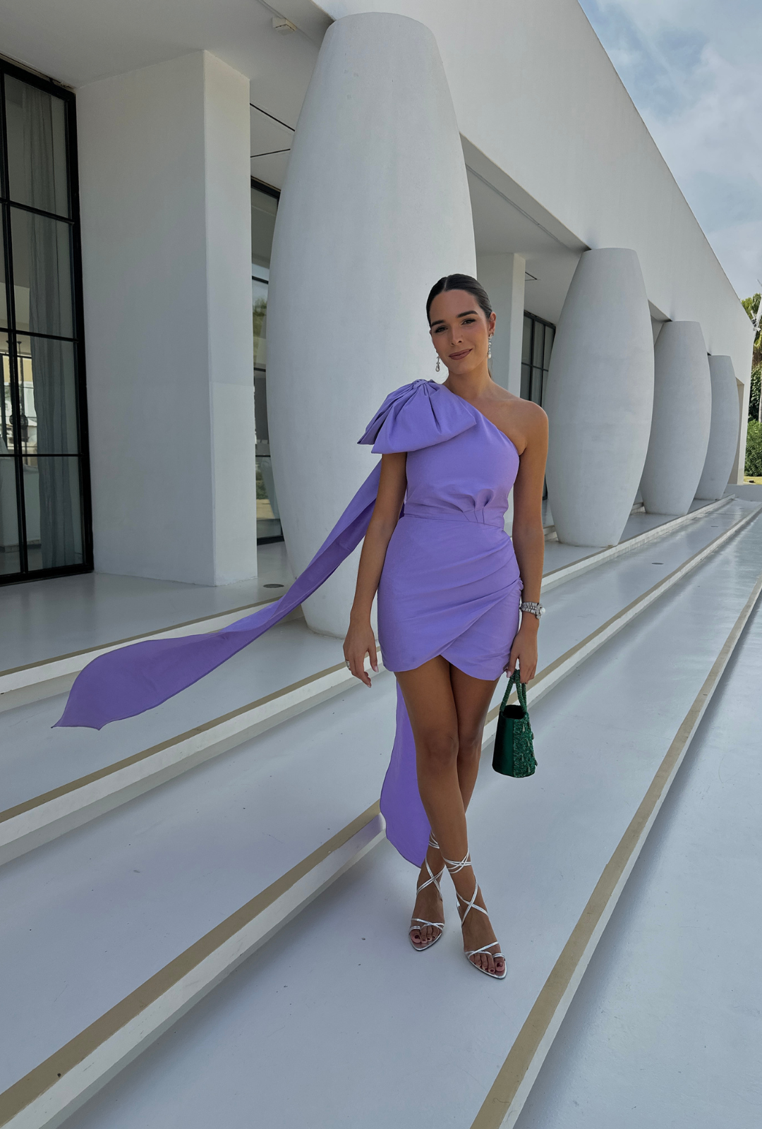 One-Shoulder Taffeta Dress with Dramatic Bow