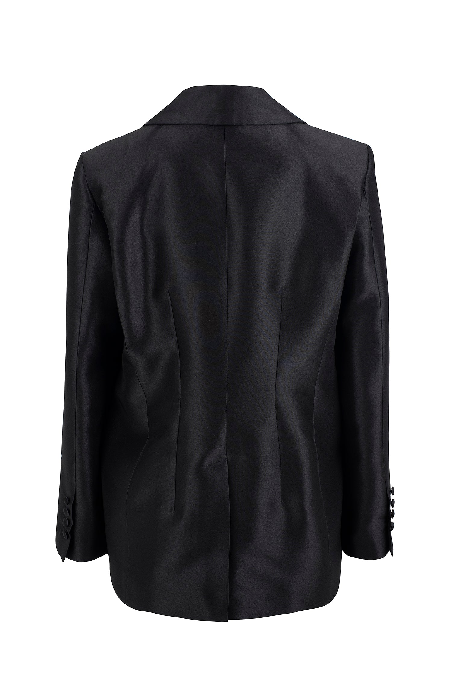 Crafted from a structured fabric that maintains its crisp silhouette without creasing, it features a tailored fit to accentuate the feminine waist. Details include fabric-covered buttons on the cuffs and front closure, as well as classic flap pockets for a refined touch.
