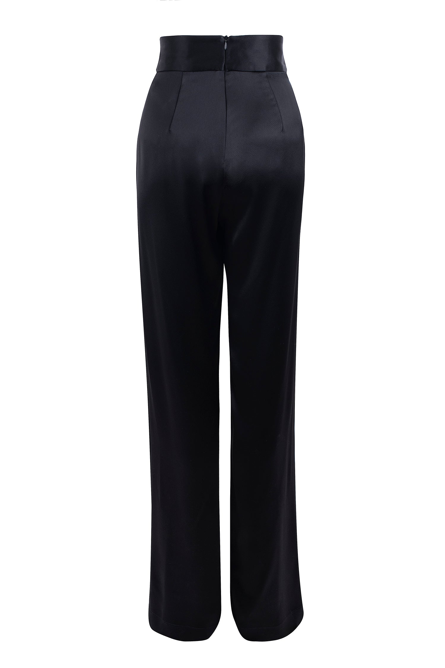 The ultimate party trousers your wardrobe needs. Designed for both elegance and comfort, these high-waisted trousers are crafted from luxurious satin with a fluid wide-leg cut. Featuring front pleats for added structure and an invisible back zipper, they offer a flawless fit with effortless movement.