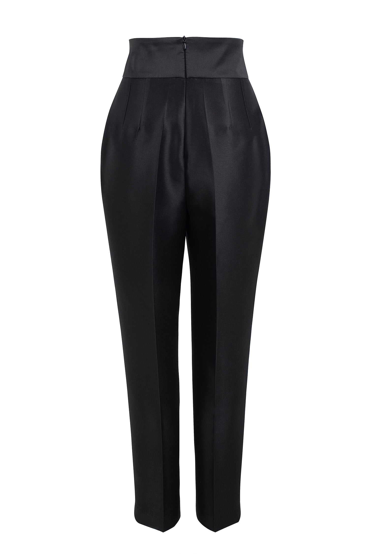 Crafted from a structured fabric, they feature side pockets and the brand’s signature V-waist detail for a distinctive touch. Finished with an invisible back zipper, they offer a flawless fit and effortless sophistication.