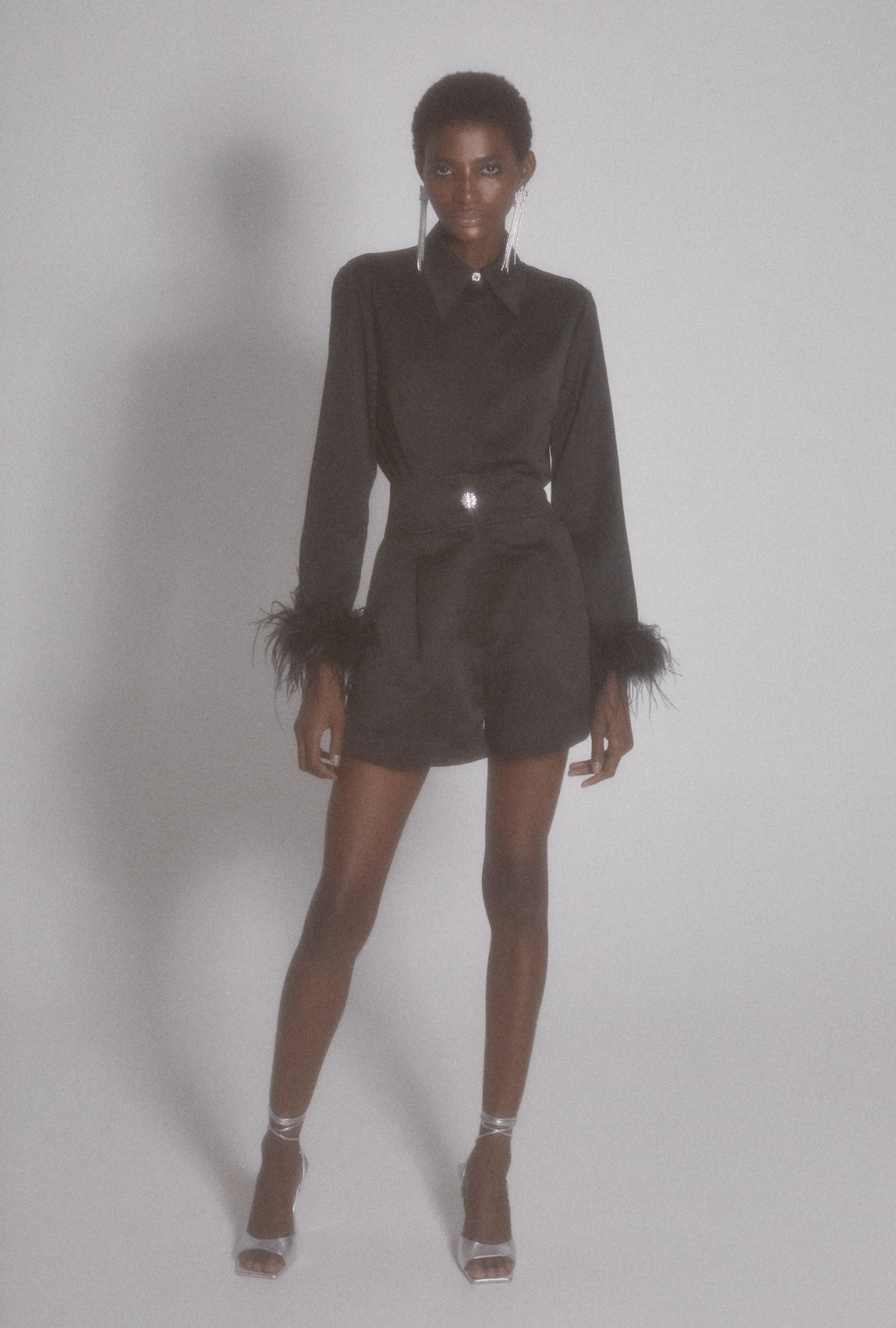Pair them with our black feathered shirt for a modern and effortlessly chic party look.