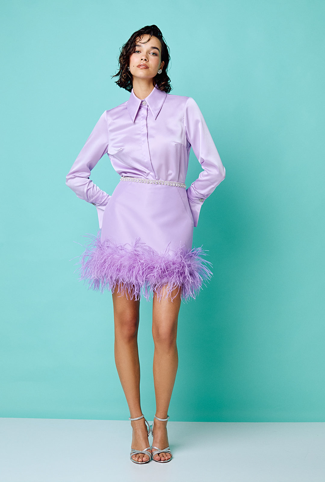 Pair it with our matching feathered shirt, or mix it with other staples from your wardrobe. The model wears size 34 and is 1.76 m tall. The skirt length is 41 cm, excluding the feathers.