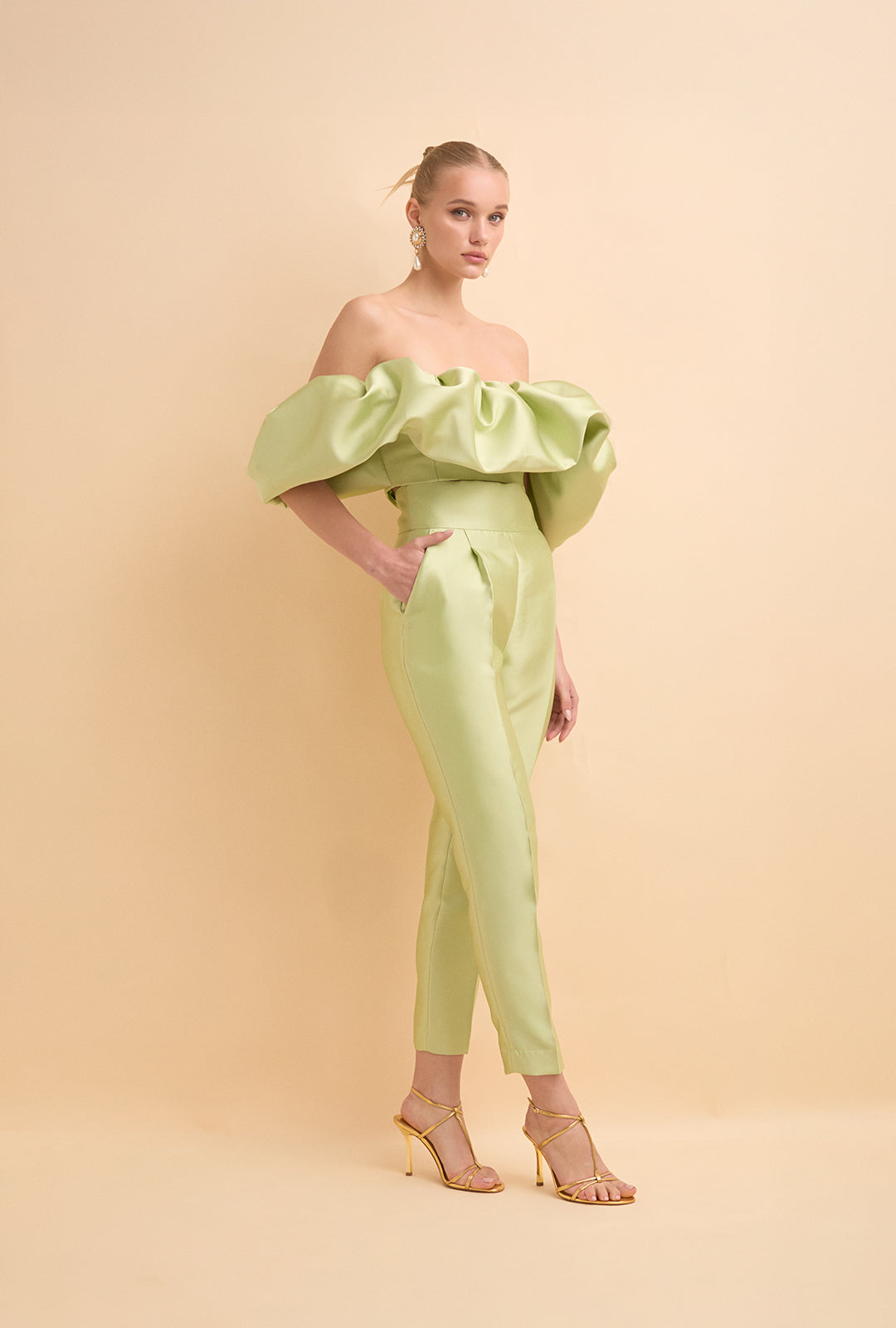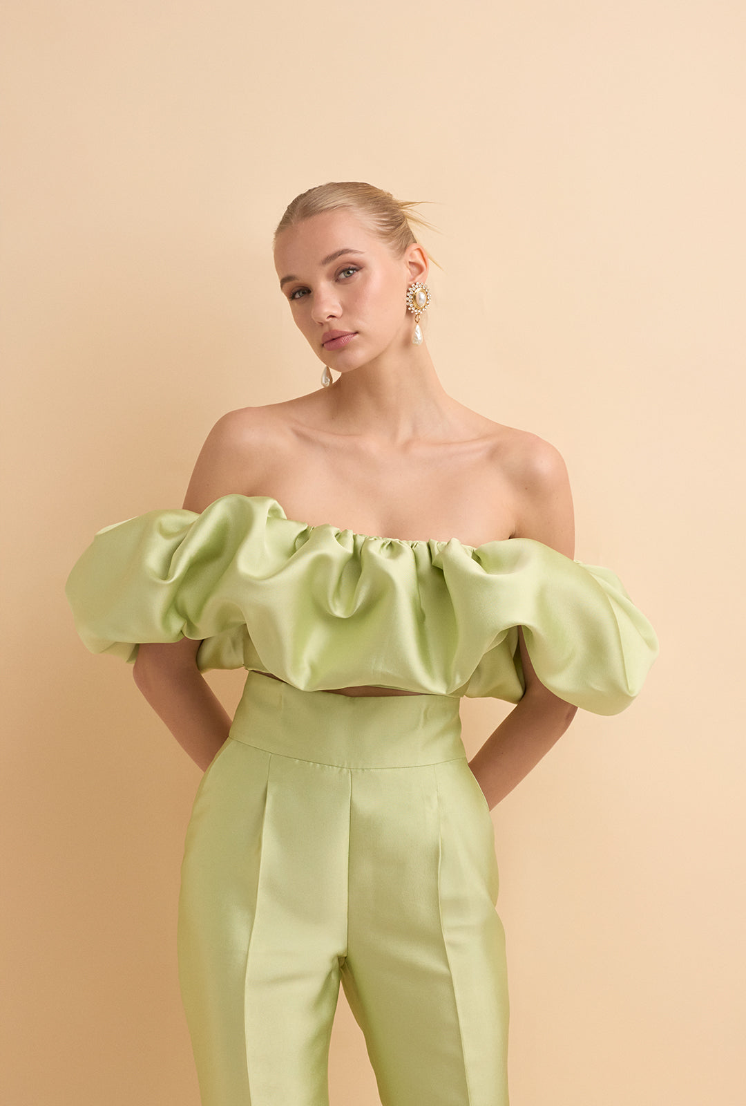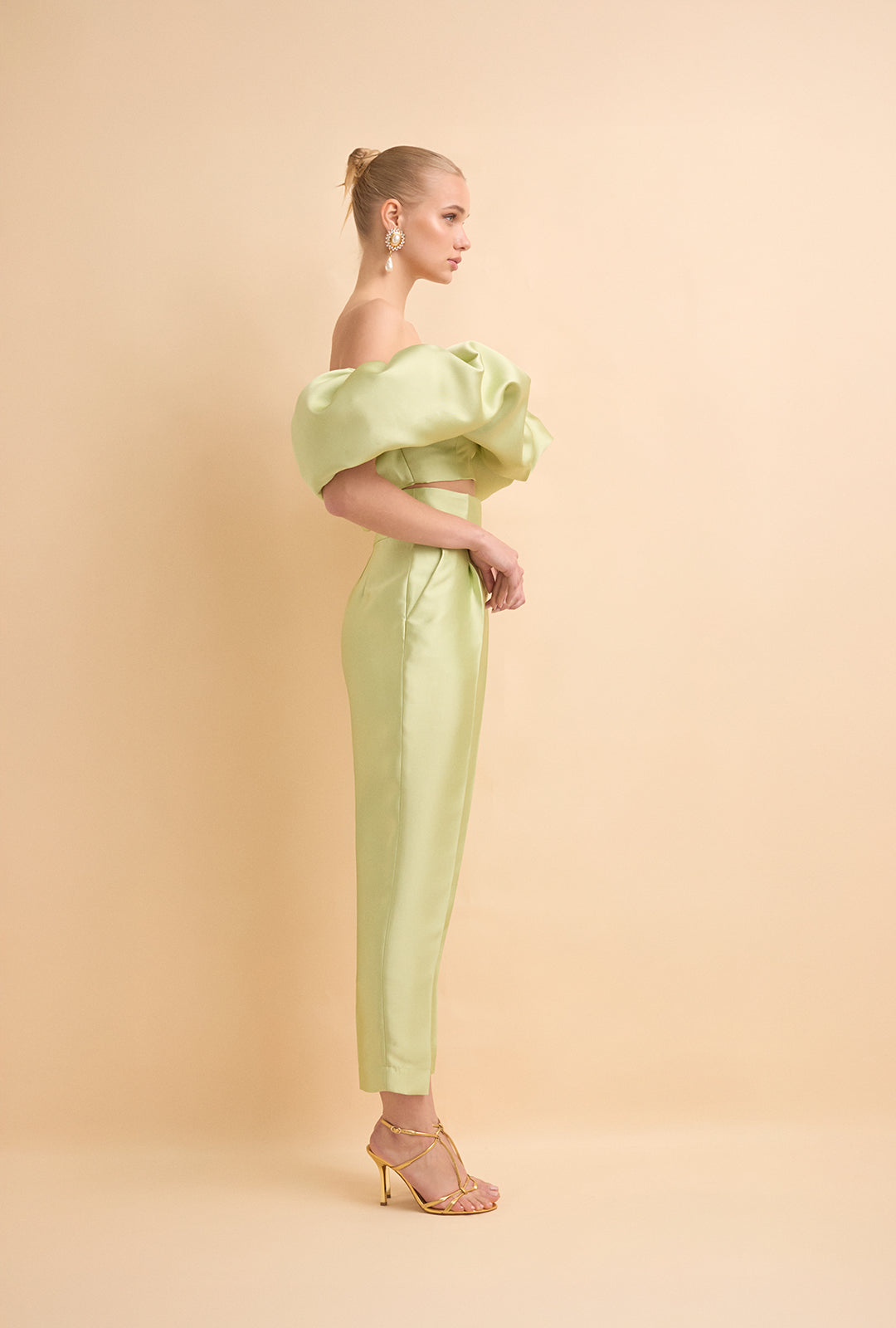 High-Waisted Structured Mikado Trousers