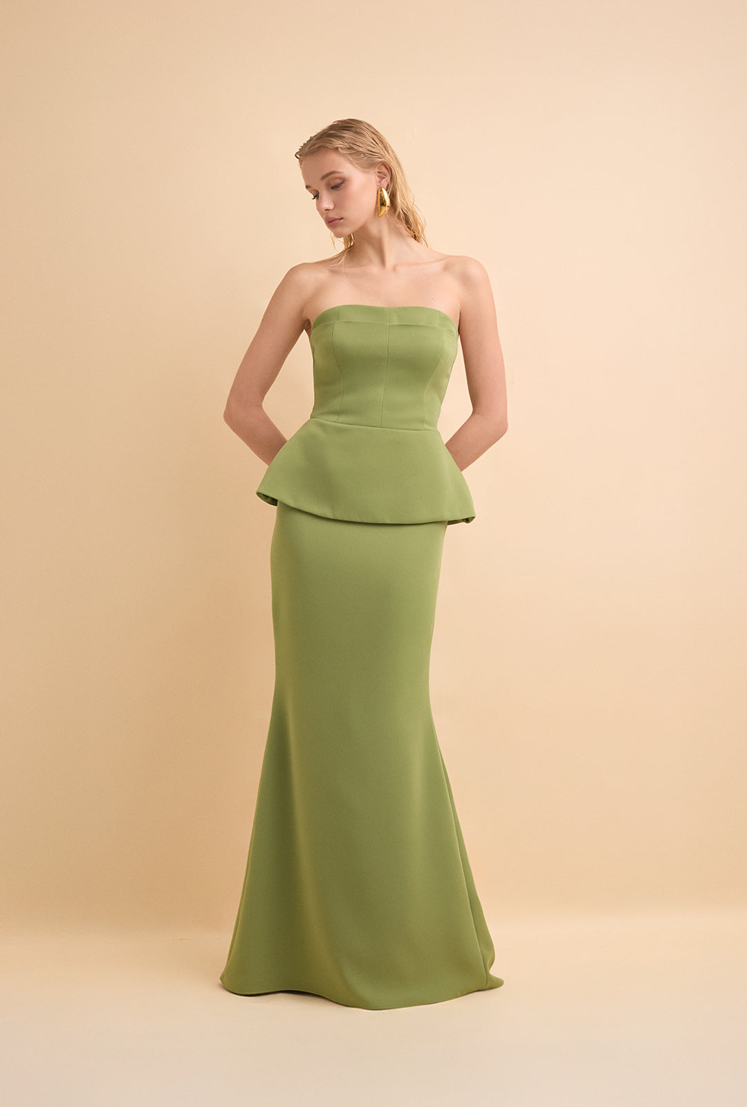 Falling to a refined full length, it’s the perfect piece to pair with heels for weddings, evening events, or sophisticated celebrations.