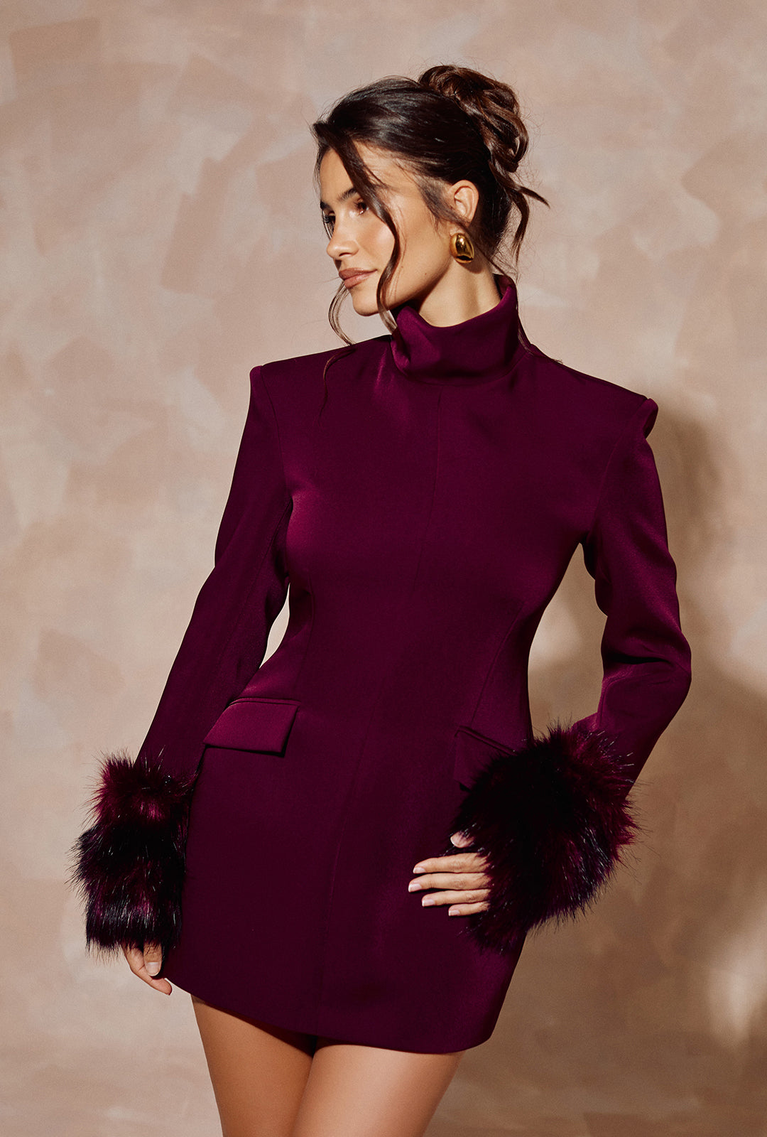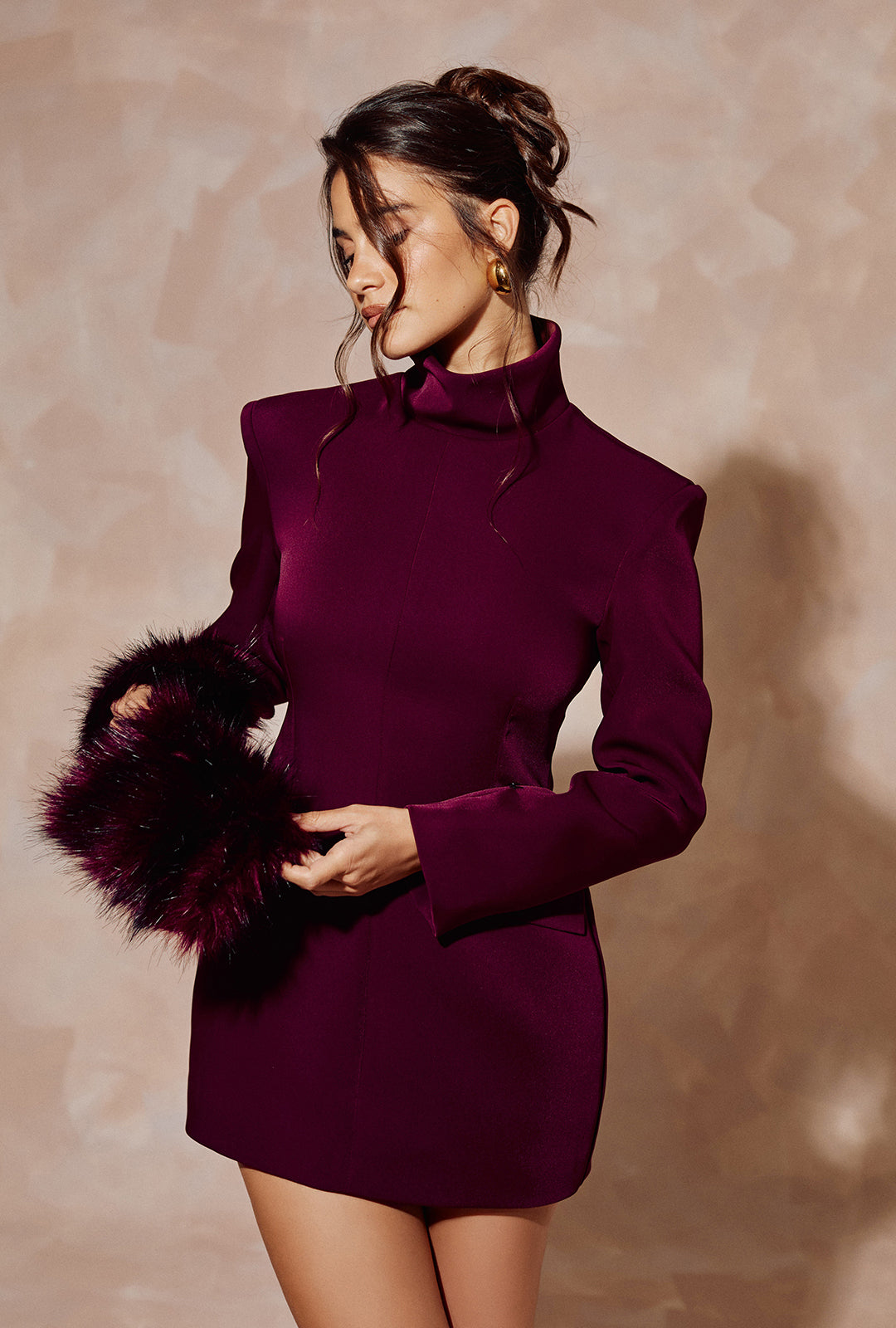 Mini Dress with Removable Faux Fur Cuffs