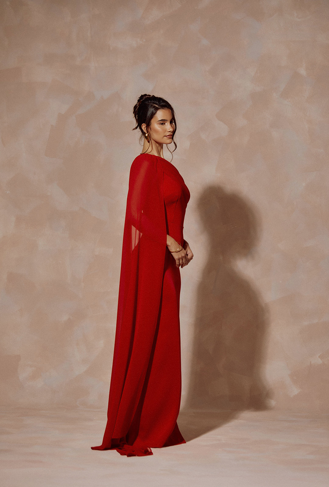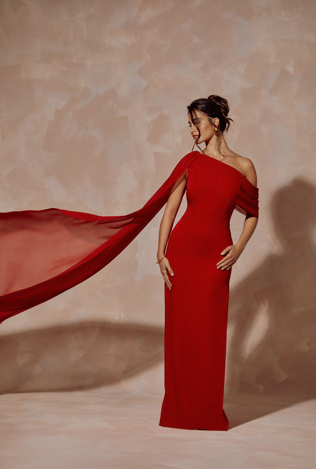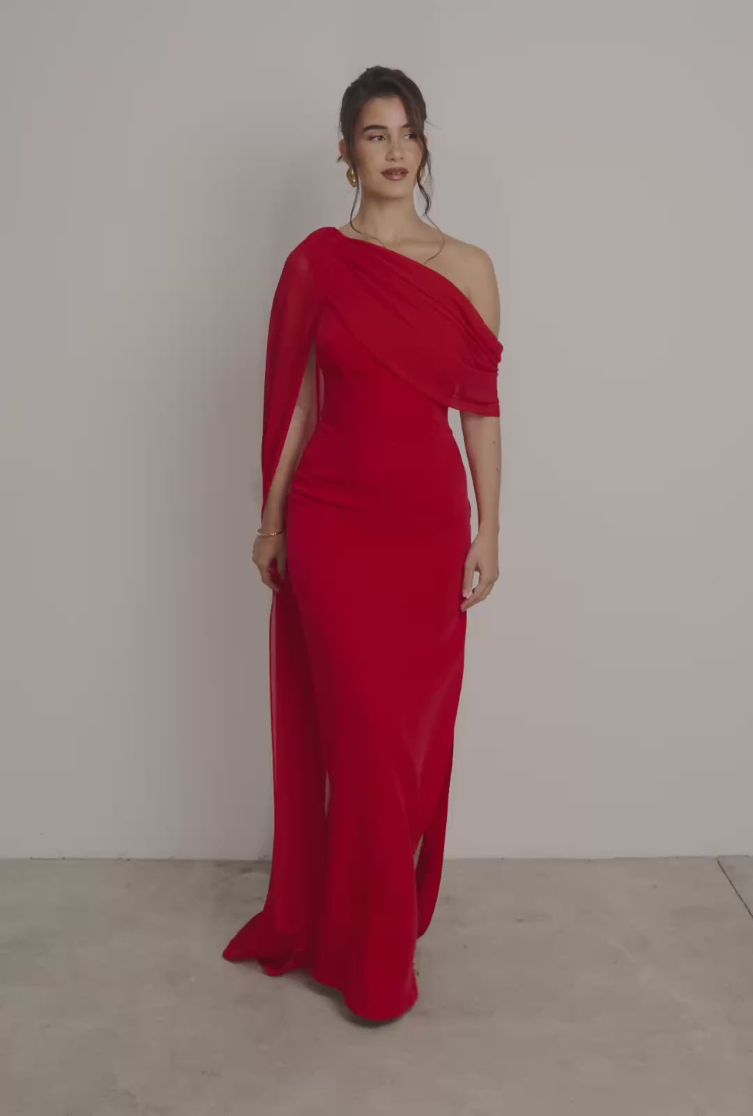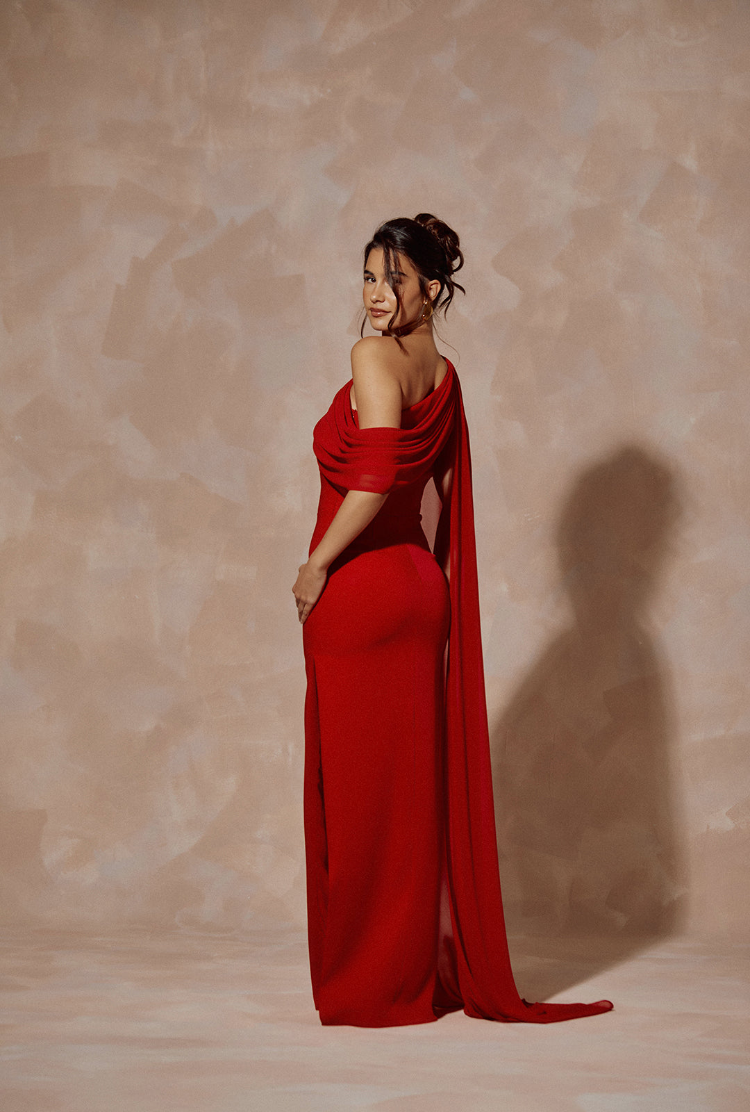 One-Shoulder Crepe Long Dress with Draped Detail