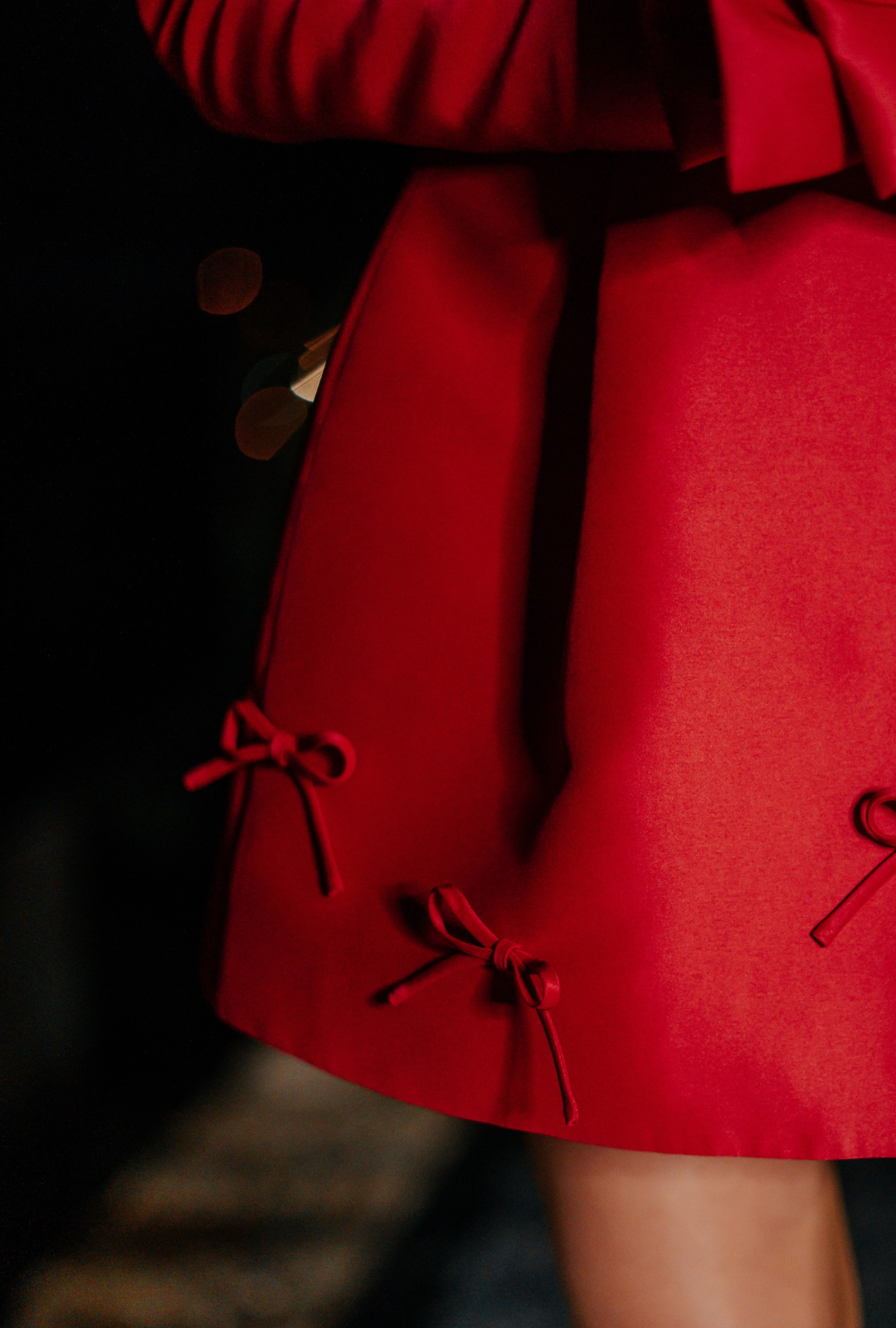 Red Structured Gown with Handcrafted Bows