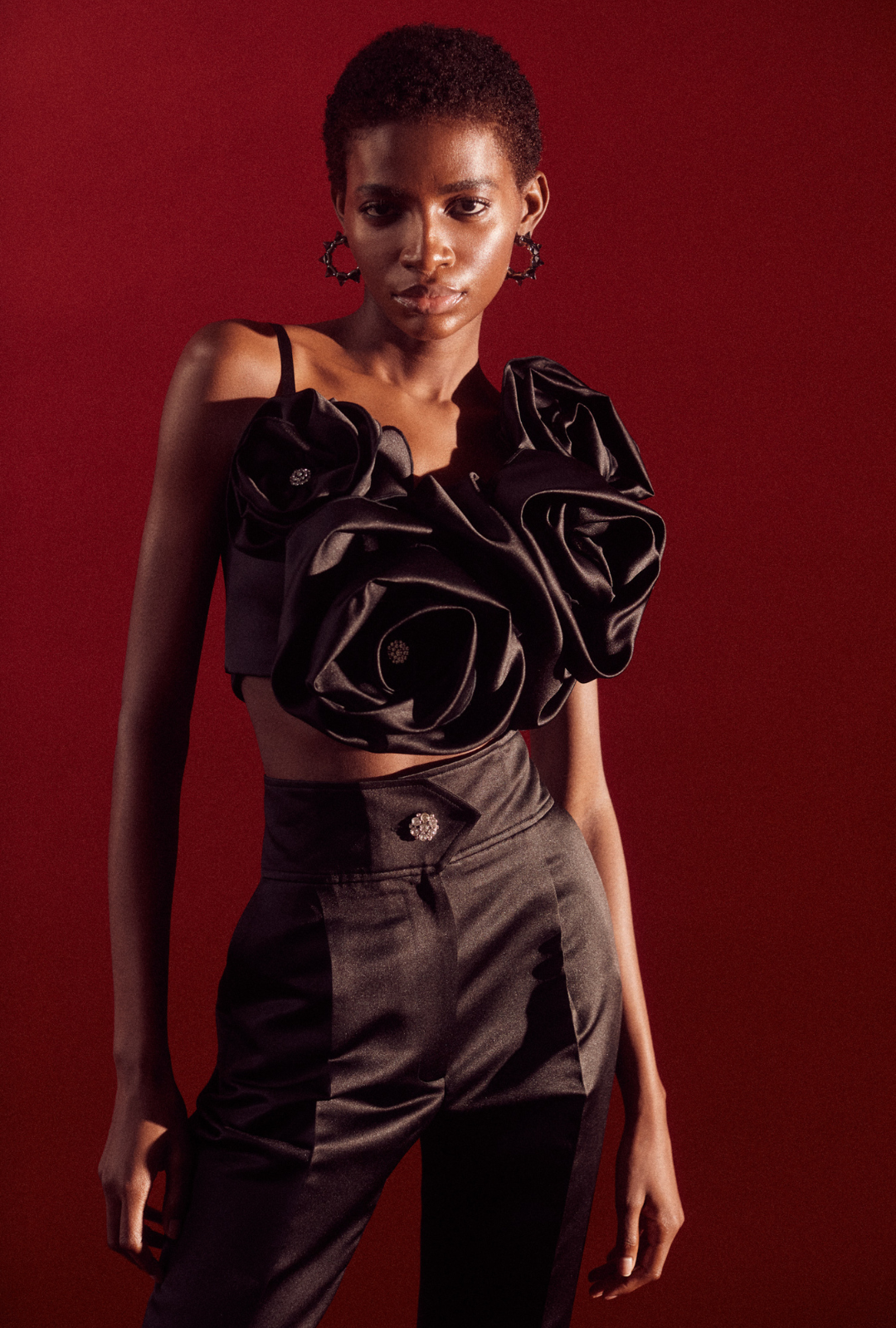 Pair them with our floral-embellished crop top for the most eye-catching party look.